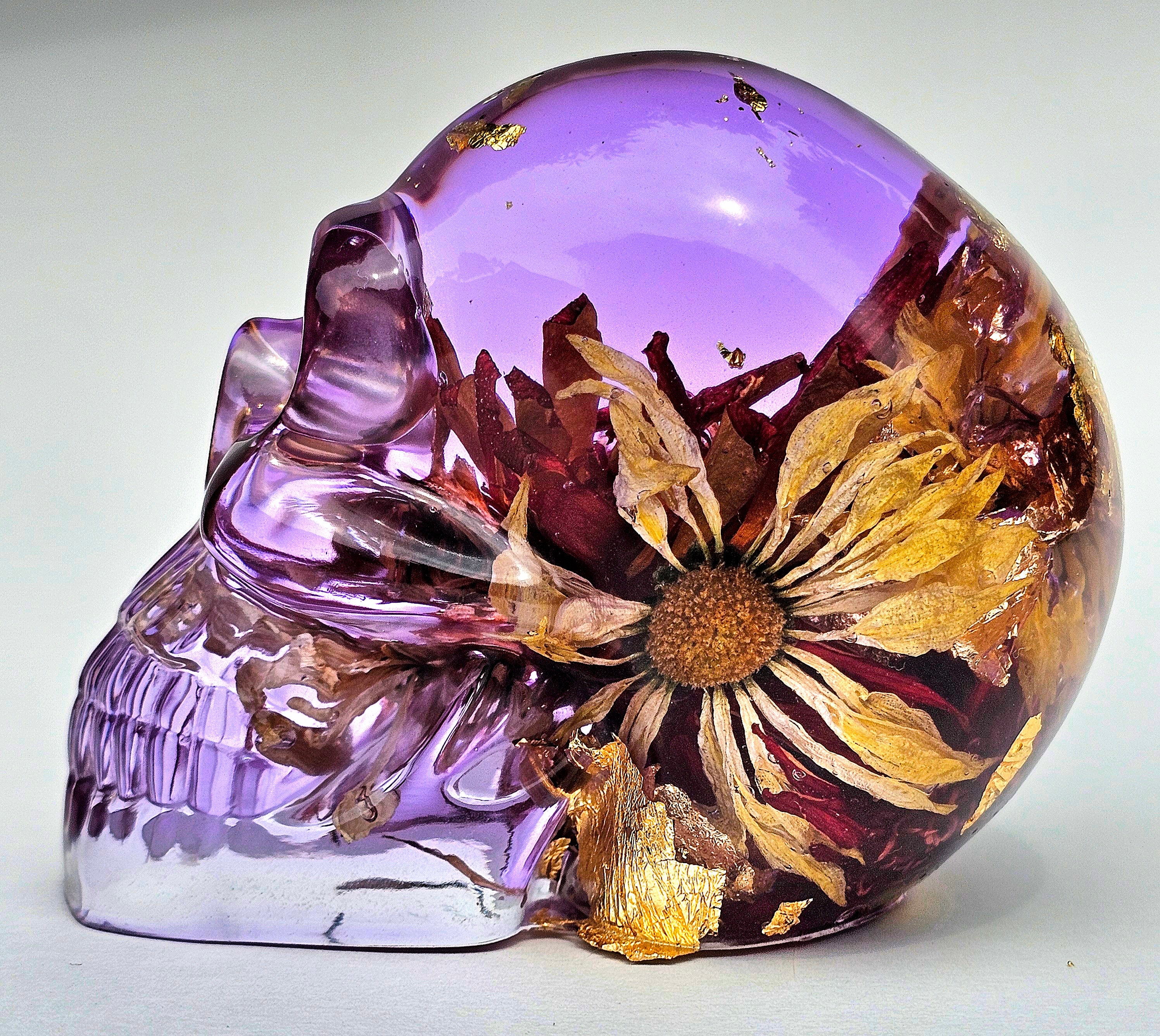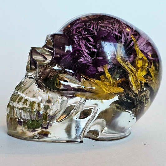 #0211 Handmade Resin Skull - Mixed wild flowers in purple resin