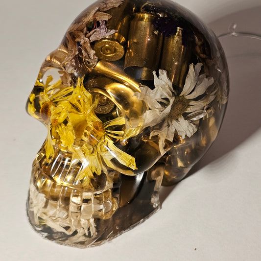 #0256 Handmade Resin Skull - Mixed wild flowers with brass