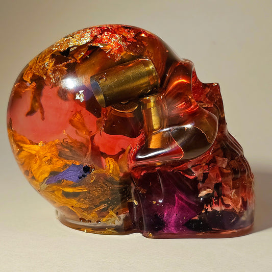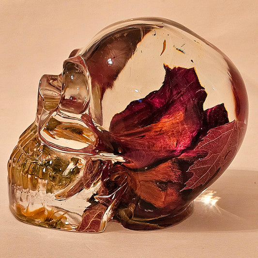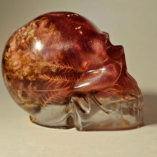 #0261 Handmade Resin Skull - Mixed flowers in warm light red resin.