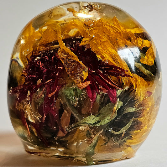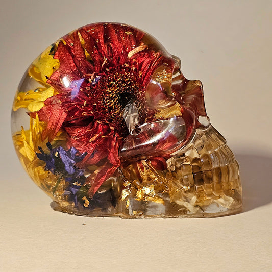 #0123 Handmade Resin Skull - Mixed sun flowers various pedals