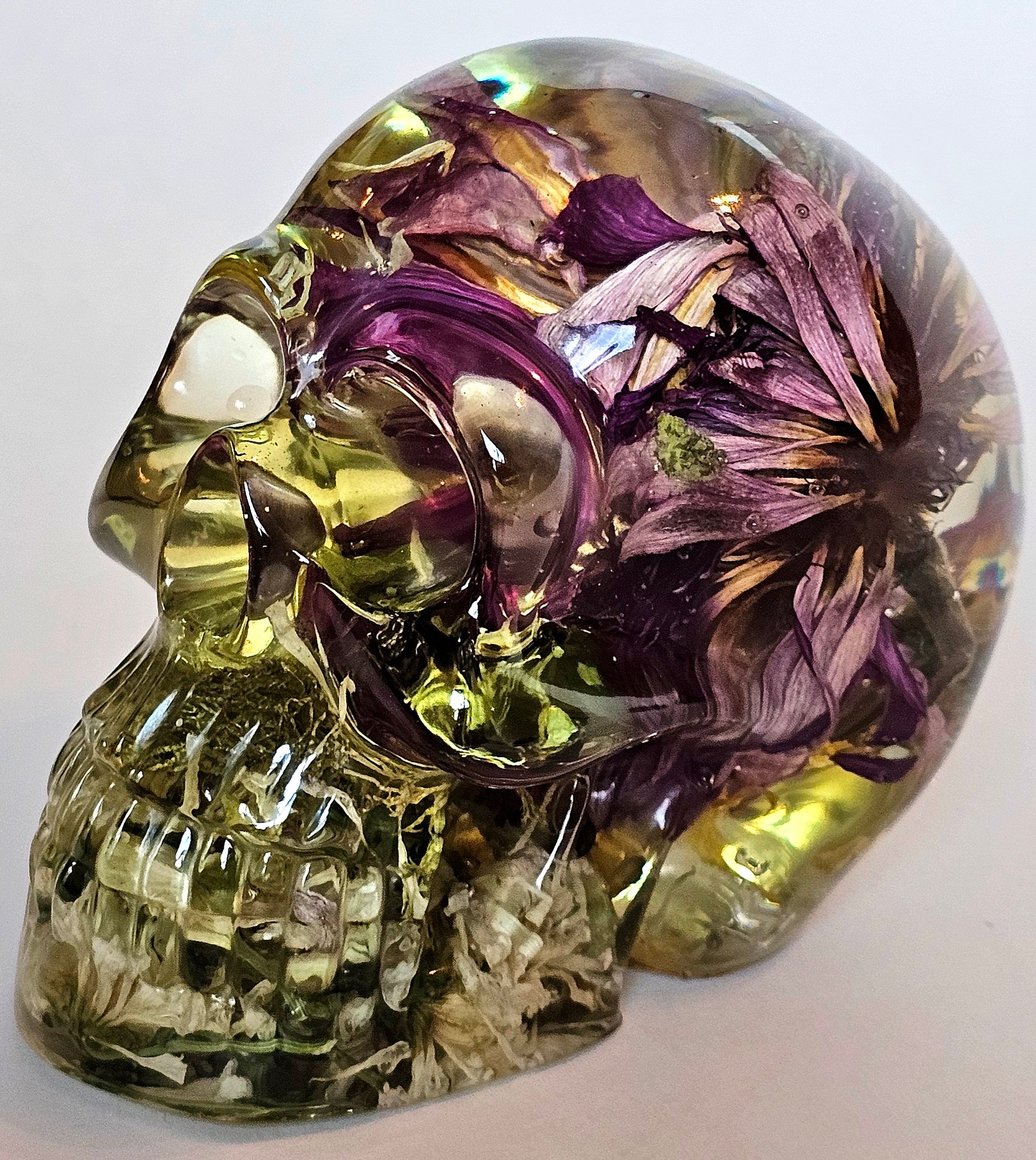 #0191 Handmade Resin Skull - Mixed wild flowers, very clear like glass
