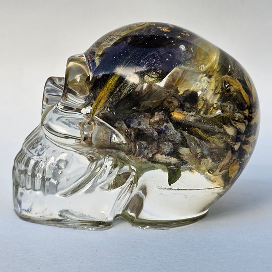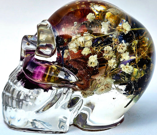 #0191 Handmade Resin Skull - Mixed wild flowers, very clear like glass
