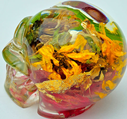 #0123 Handmade Resin Skull - Mixed sun flowers various pedals