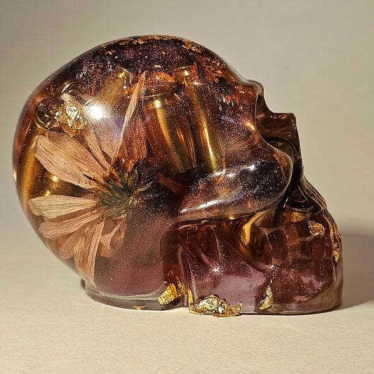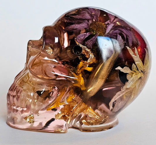 #0256 Handmade Resin Skull - Mixed wild flowers with brass