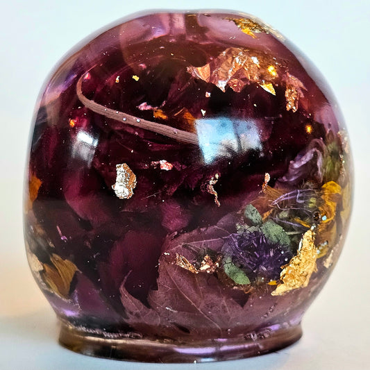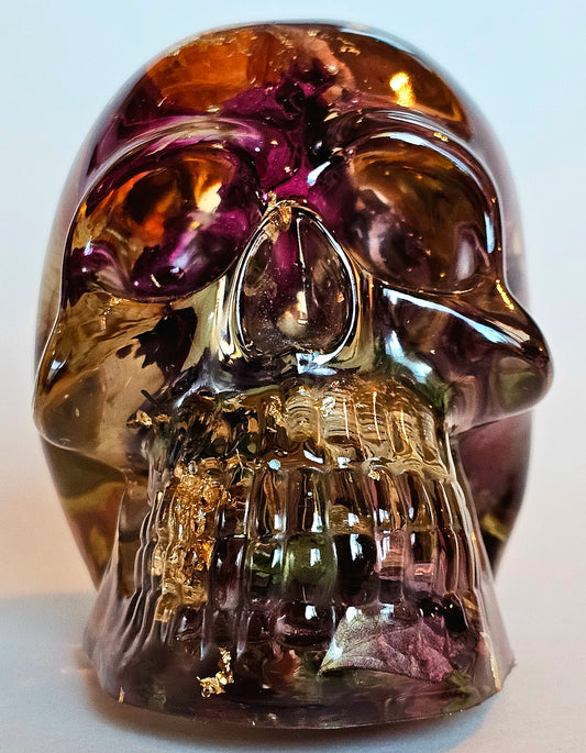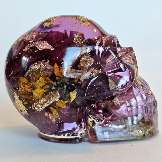 #0211 Handmade Resin Skull - Mixed wild flowers in purple resin