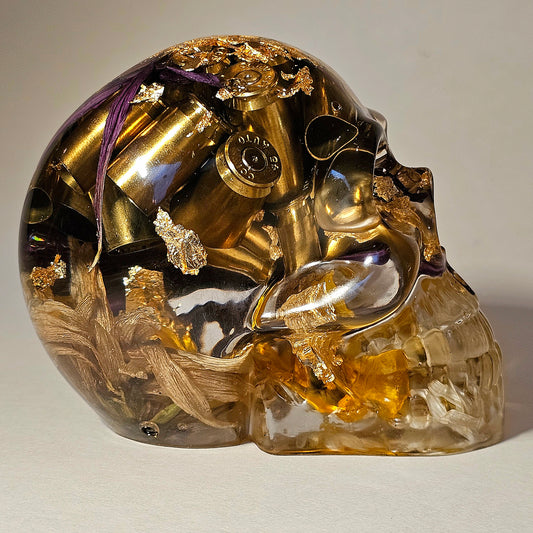 #0259 Handmade Resin Skull - Mixed brass in silver pigmen/blue resin. One of a kind for sure.